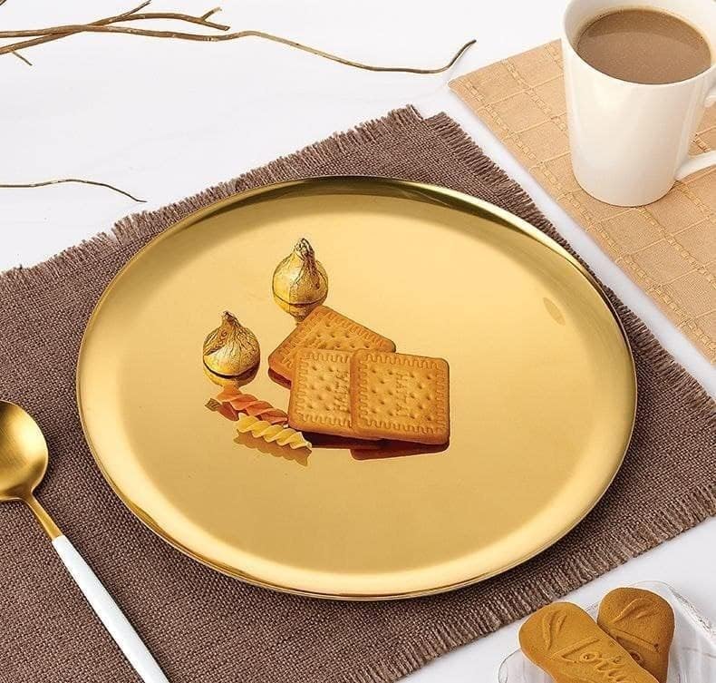 Generic - أطباق ذهبية فاخرة بتصميم أوروبي عصري – مجموعة متكاملة من 5 أحجام لتقديم الطعام بأناقة وجودة عالية تدوم طويلاً (Gold, طبق مقاس 26)
