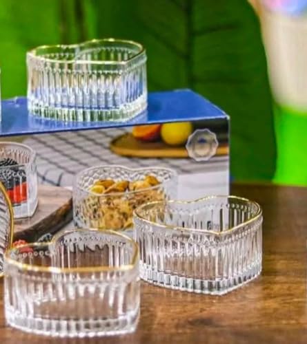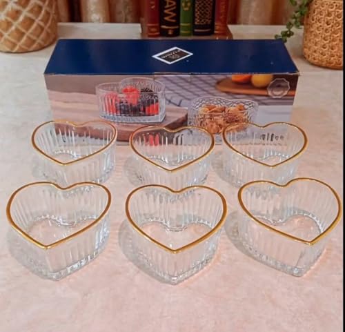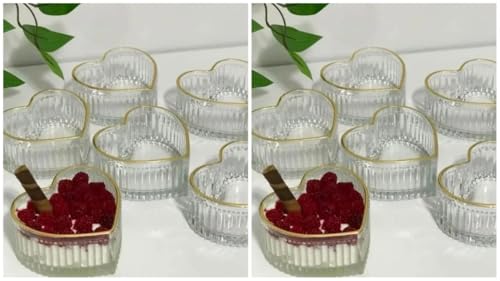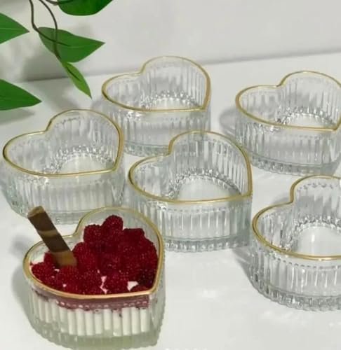 Generic - أطباق عميقة للتقديم على شكل قلب، أطباق عميقة للحلويات بحافة ذهبية، أطباق عميقة متينة مقاومة لدرجات الحرارة للآيس كريم والجيلي والحلوى والمكسرات وطاولة الحفلات وديكور المنزل (طقمين من 6 قطع (12 قطعة))