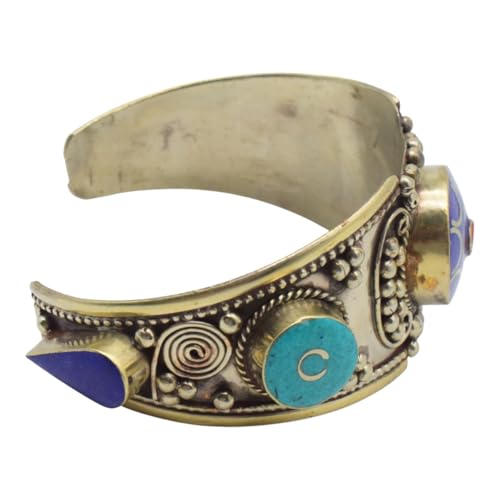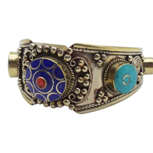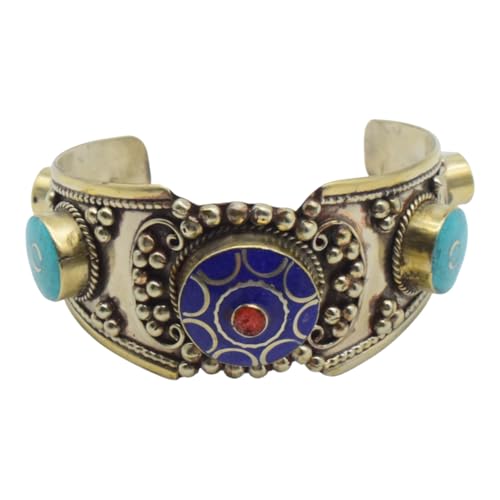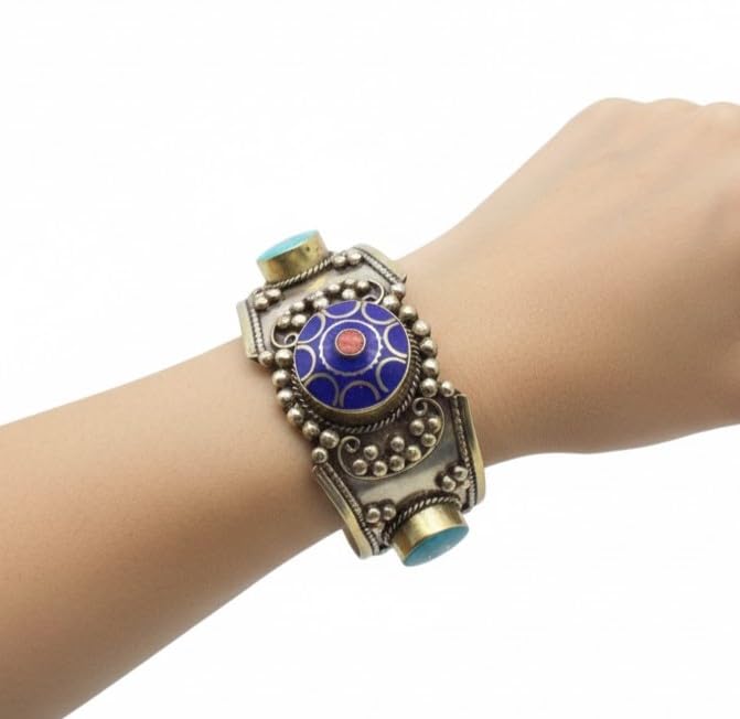 Indian Stones MA - اسوره هندي فاخرة من الفضة المخلوطة بالنحاس اقل من العيار مرصع بأحجار طبيعية كريمة من الفيروز ولابس لازولي - تركواز ازرق Awd2