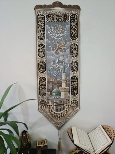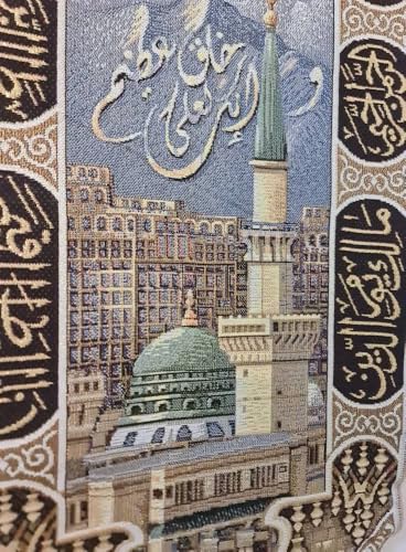 Generic - لوحة جدارية إسلامية فاخرة، تصميم المسجد النبوي مع الخط العربي، ديكور منزلي غير تقليدي، إطار مزخرف مقاس كبير 35x100 cm