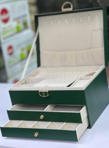 Generic - صندوق مجوهرات فاخر بدرجين، أخضر غامق، حافظة منظمة للإكسسوارات مع أقسام متعددة