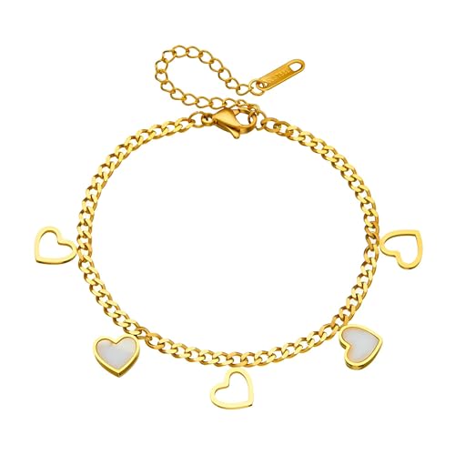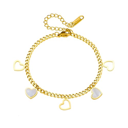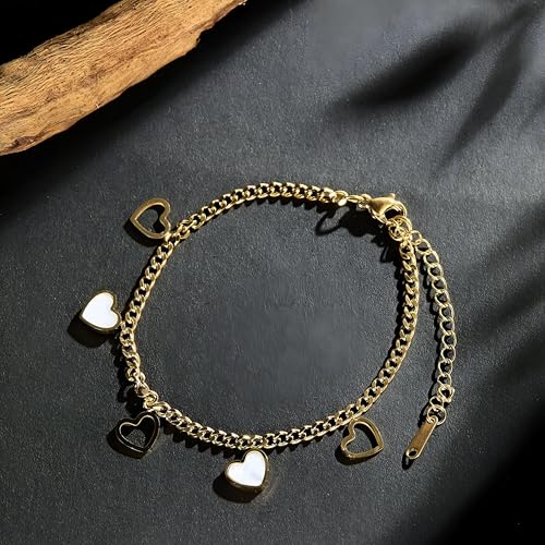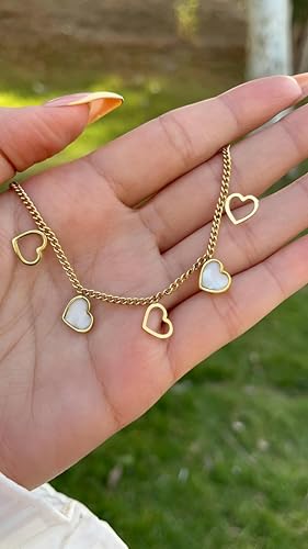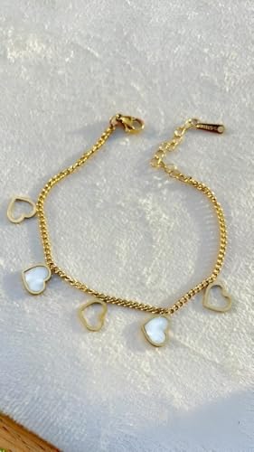 Generic - مجوهرات فاخرة - دلاية على شكل قلب مطلية بالذهب مع قلوب من عرق اللؤلؤ ونمط حلقات سلسلة للنساء العصريات