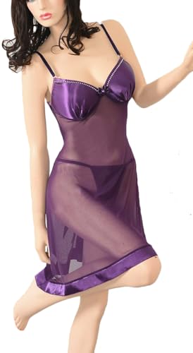 Generic - طقم لانجيري فاخر من الدانتيل وباور نت مع جي-ثونج blk3 ارجواني