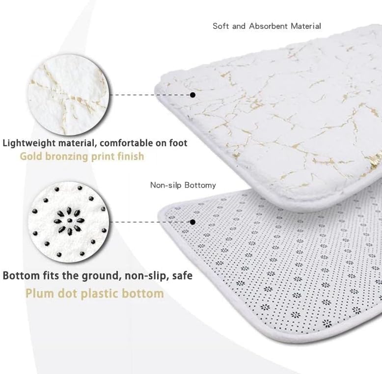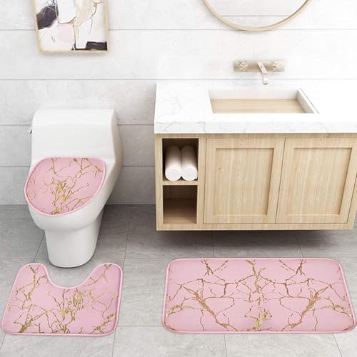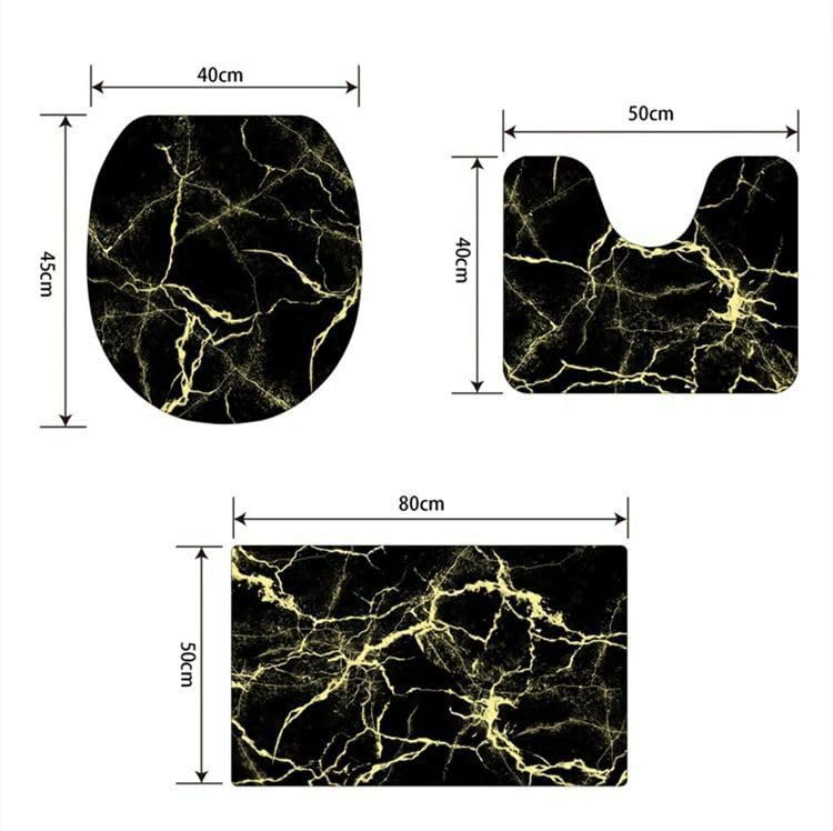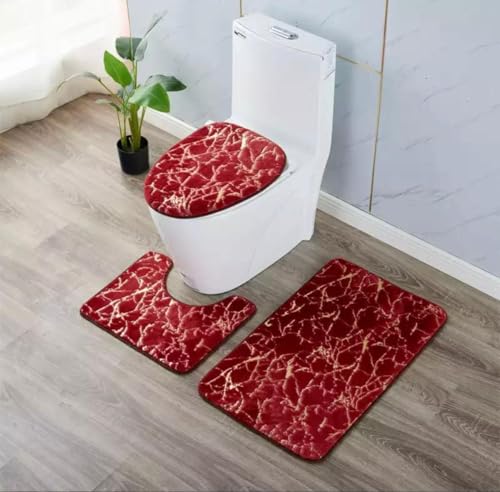 Generic - طقم سجاد حمام فاخر بنقشة الرخام ، مكون من دواسة على شكل حرف U، ومشاية، وغطاء قاعدة الحمام (احمر)