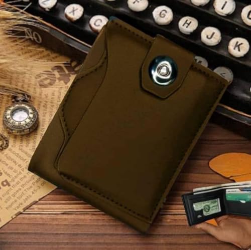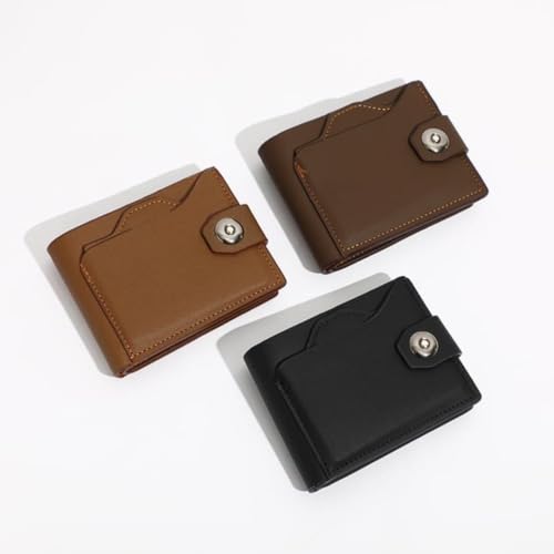 - تصميم فاخر: محفظة جلدية أنيقة مع إغلاق بزر معدني، متوفرة بثلاثة ألوان مختلفة (أسود، بني فاتح، بني داكن)
