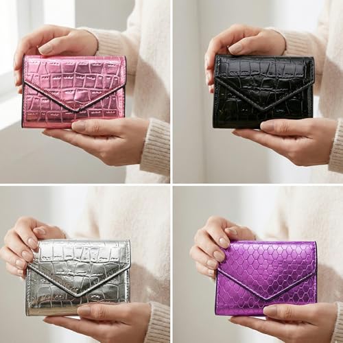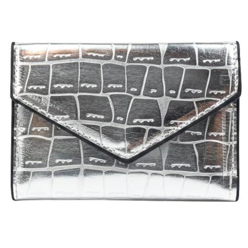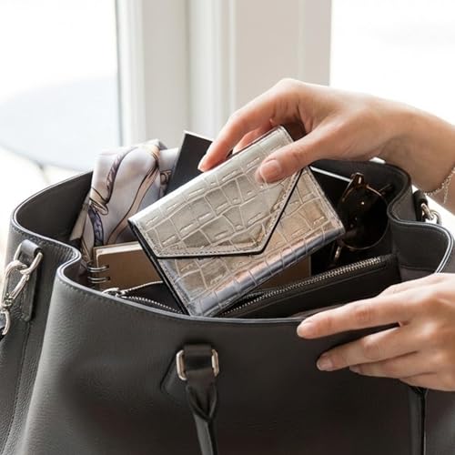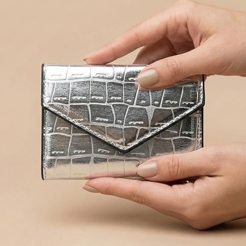 Generic - محفظة جلد ميتاليك فاخرة للنساء – تصميم نحيف وأنيق – متينة ومقاومة للخدش – تنظيم داخلي عملي – عرض 24 سم، ارتفاع 11 سم، عمق 2 سم (فضي)