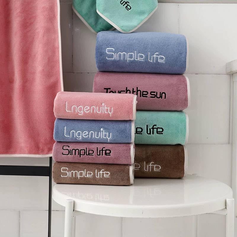 - خامة ممتازة: فوط فاخرة من المايكروفايبر بتصميمات مطرزة أنيقة ولمسات شريطية مزخرفة، مثالية للاستخدام اليومي.
