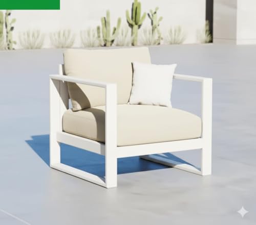 Generic - كرسي خارجي فاخر، إطار أبيض، وسائد بيج، تصميم عصري، مناسب للشرفة والحديقة