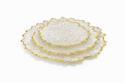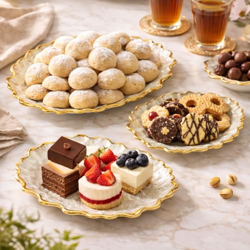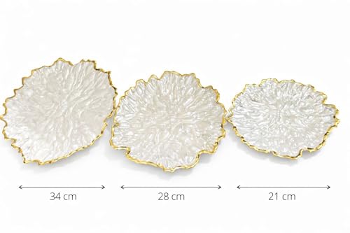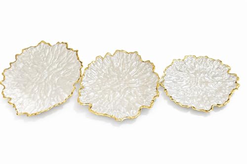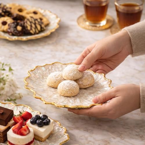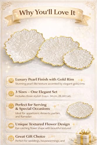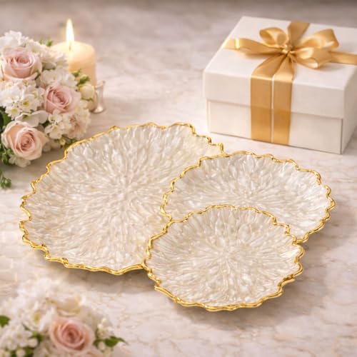 Generic - طقم صواني تقديم فاخرة من اللؤلؤ مع حافة ذهبية - اطباق انيقة مزخرفة بتصميم زهور للحلويات والمقبلات والشاي والقهوة، مثالية لرمضان والحفلات والهدايا