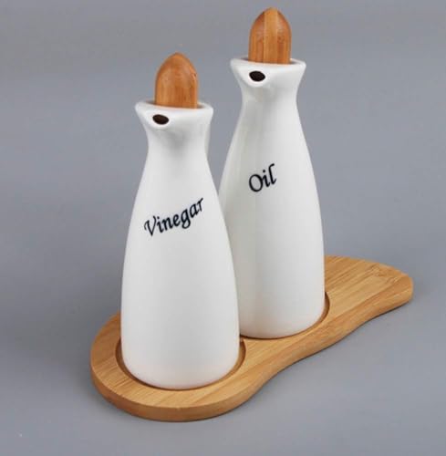 - طقم زياته بورسلين بالملاحة مكون من 5 قطع تتضمن 2 زياته بورسلين، حامل خشب، و2 ملاحة.