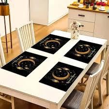 Generic - اكسسوارات رمضان فاخرة - مجموعة من 4 قطع من الكتان بطباعة ثلاثية الابعاد معقدة، مصممة للطاولات الاحتفالية او الصواني او اغطية الثلاجة، مقاس 30 × 40 سم، تضيف لمسة فاخرة الى ديكورك.