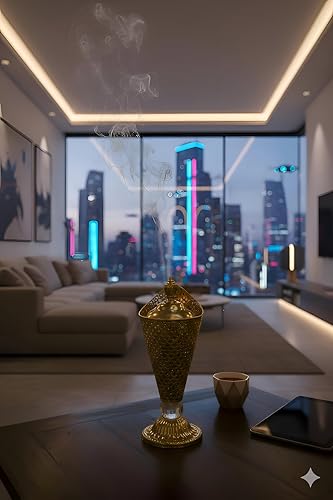 - تتميز المبخرة الفاخرة بتصميم جميل مستوحى من رمضان يكمل بشكل أنيق مساحات المعيشة ومناطق المجالس والديكور الاحتفالي، مما يعزز الأجواء مع الرقي الثقافي.