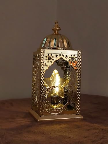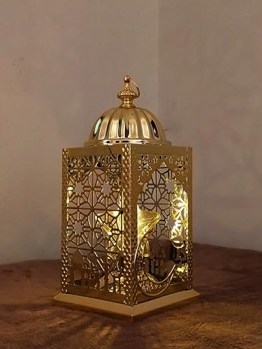 Generic - فانوس رمضان الفاخربتصميم اسلامي - معدني مضيء باللون الذهبي - ديكور رمضان - مقاس 34*11*11سم
