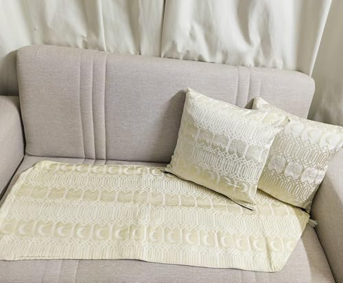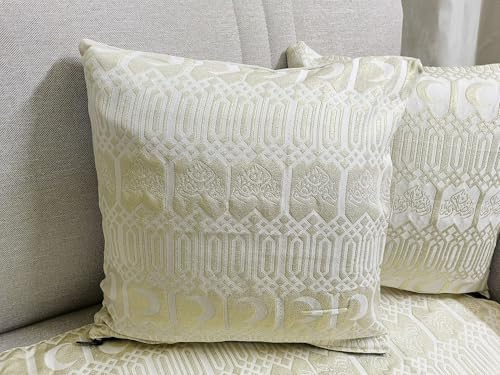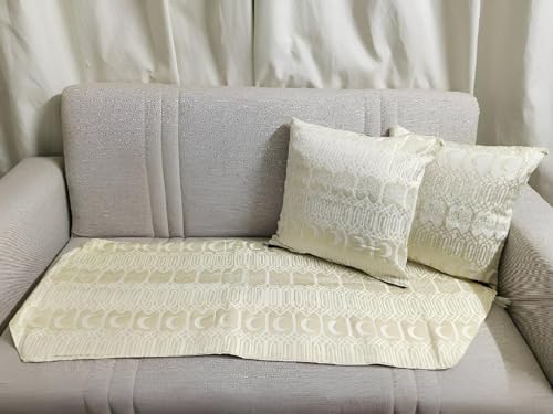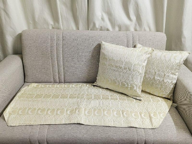 - يتضمن مفرش واحد مطرز بأناقة ووسادتين من القطيفة، مما يخلق مظهرًا رمضانيًا متناسقًا.