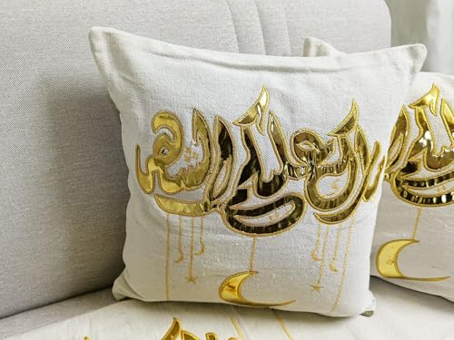- يتضمن مفرش واحد مطرز بأناقة ووسادتين من القطيفة، مما يخلق مظهرًا رمضانيًا متناسقًا.