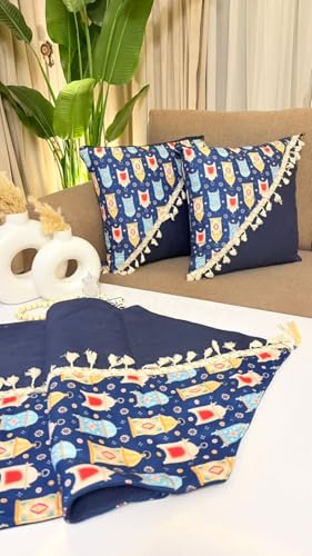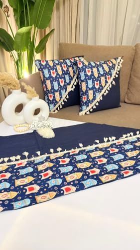 - مجموعة متكاملة: تتضمن مفرش طاولة وأغطية وسائد مزينة بشراشيب أنيقة للديكور الرمضاني