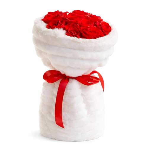 Generic - باقة ورود صناعية قطيفة مع حامل فرو ناعم، زاهية مصممة للمناسبات الرومانسية مع صندوق هدايا أنيق، أحمر