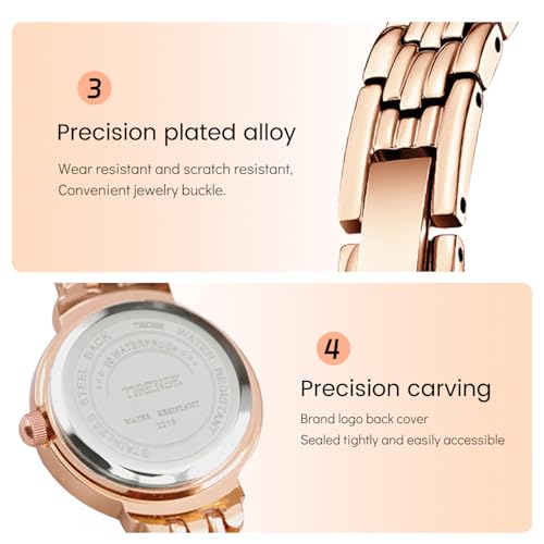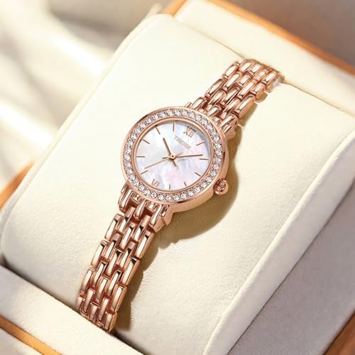 Generic - ساعة كوارتز رسمية أنيقة ممتازة للنساء ومينا مزين بالكريستال، خفيفة الوزن للغاية ومقاومة للخدش، ذهبي (Rose Gold)
