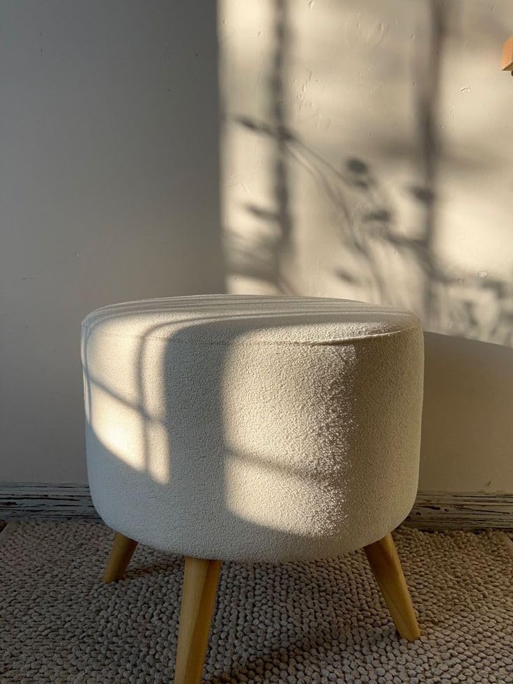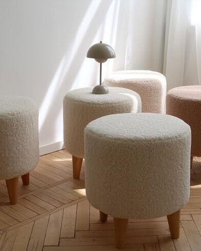 - تصميم عصري: مقعد دائري منخفض مغطى بقماش شيربا الناعم مع أرجل خشبية أنيقة