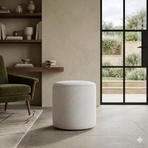 Generic - كرسي بوف عثماني دائري فاخر بقماش بوكليه – مقعد مبطن مريح متعدد الاستخدام لغرفة المعيشة وغرفة النوم بتصميم عصري أنيق