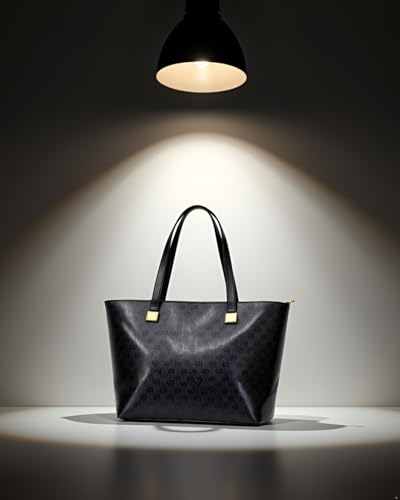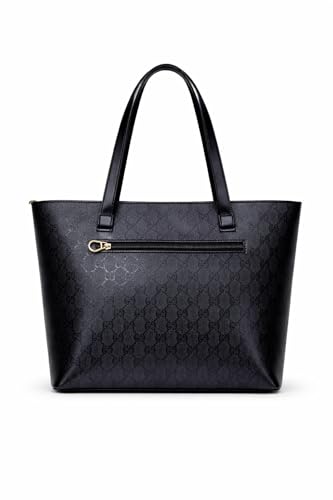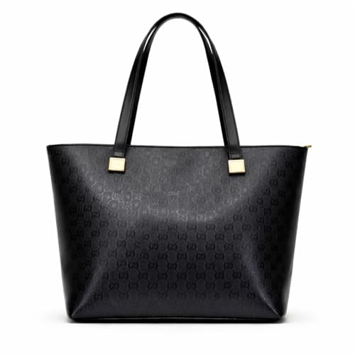 Generic - حقيبة كتف نسائية جلدية سوداء لامعه فاخرة - شنطة جلد كبيرة مع نمط منقوش - تفاصيل ذهبية - حقيبة بسوستة وجيب خارجي - تصميم كلاسيكي و انيق و جذاب
