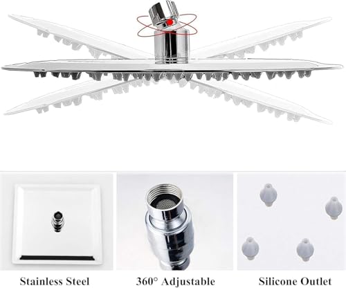 Generic - دش فاخر: رؤوس دش بتصميم عصري وتجربة استحمام مريحة وعالية الضغط (طاسة دش مطري مربع مقاس 40 سم)