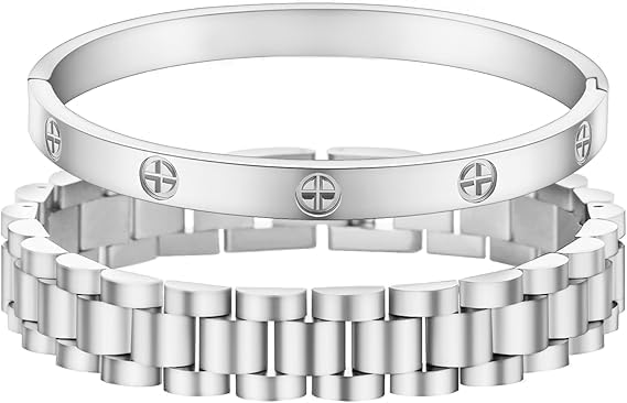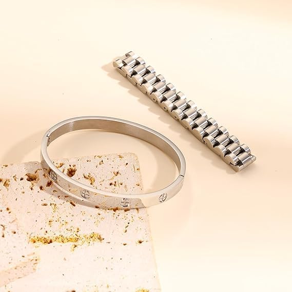 Generic - سوار فضي فاخر للنساء، تصميم كلاسيكي، ستانلس ستيل، أنيق ومتين