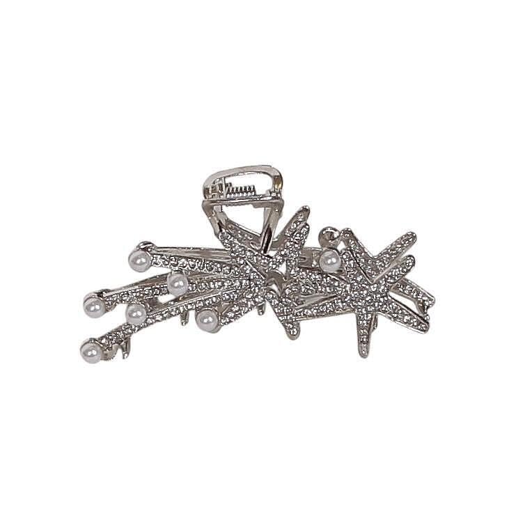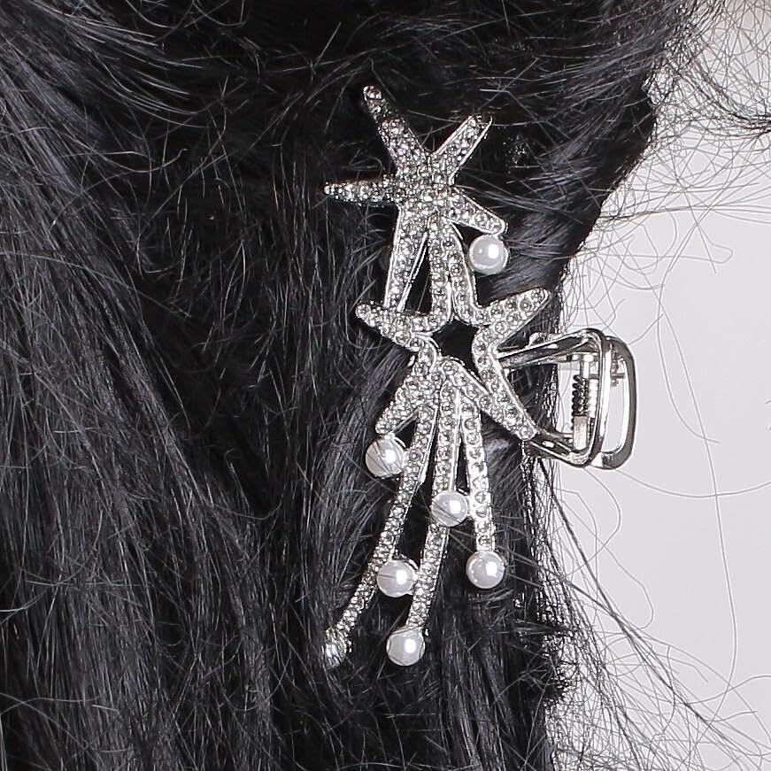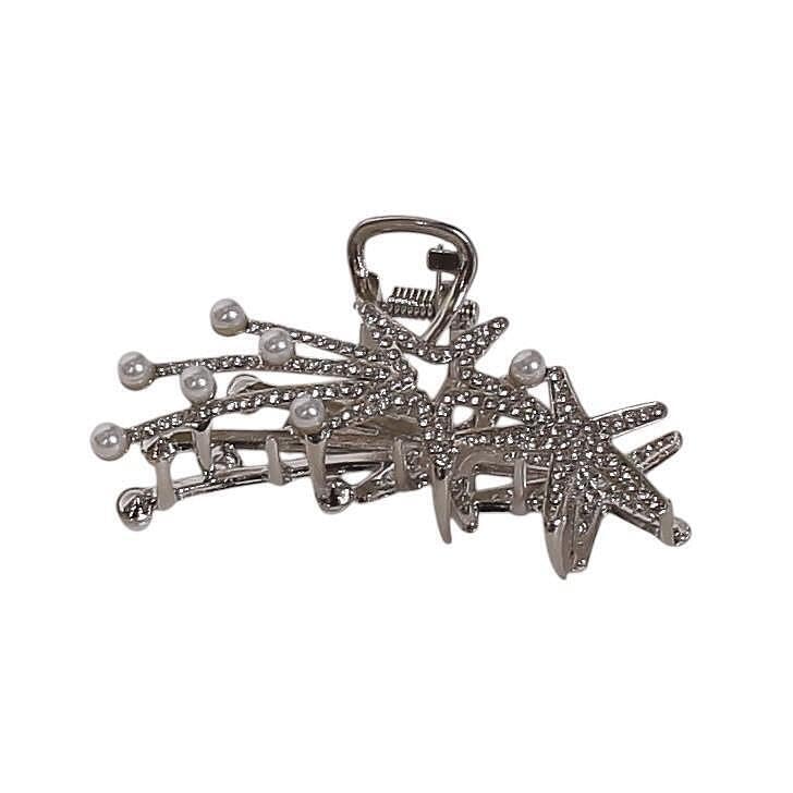 Generic - مشبك شعر فاخر معدني بلون فضي مرصع باللؤلؤ ونجم البحر – إكسسوار شعر أنيق للحفلات والمناسبات