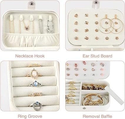 - تنظيم متعدد: مقسمة إلى 4 أقسام عملية تشمل مساحة للخواتم، وحجرات للإكسسوارات، ومشابك للسلاسل