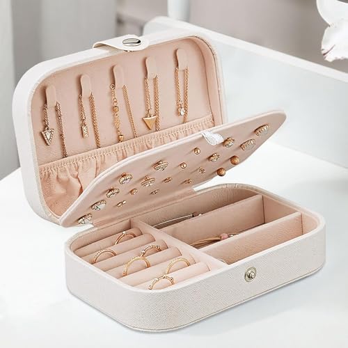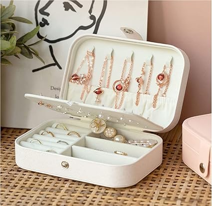 Generic - علبة مجوهرات فاخرة صغيرة الحجم مع قفل آمن وتصميم أنيق، مثالية لحفظ وتنظيم الخواتم، الأقراط، القلادات والإكسسوارات أثناء السفر