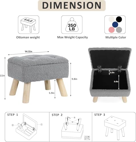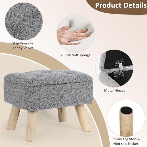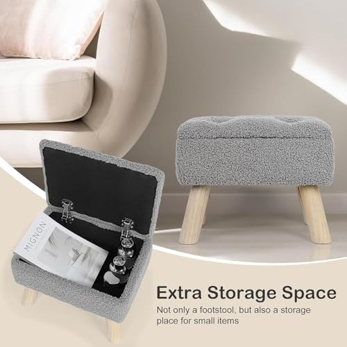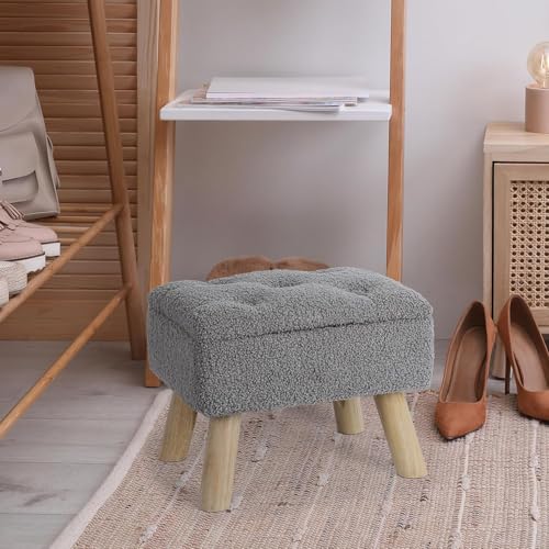 Generic - كرسي عثماني فاخر بقماش بوكليه ناعم مع أرجل خشبية طبيعية ومساحة تخزين مخفية – بوف متعدد الاستخدامات للجلوس أو مسند قدم – تصميم عصري أنيق لغرفة المعيشة وغرفة النوم والديكور المنزلي