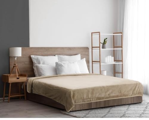 Generic - بطانية فاخرة من الفرو الناعم، لون بيج، مناسبة للسرير، قماش مخملي دافئ، غطاء سرير فاخر للمنزل والديكور