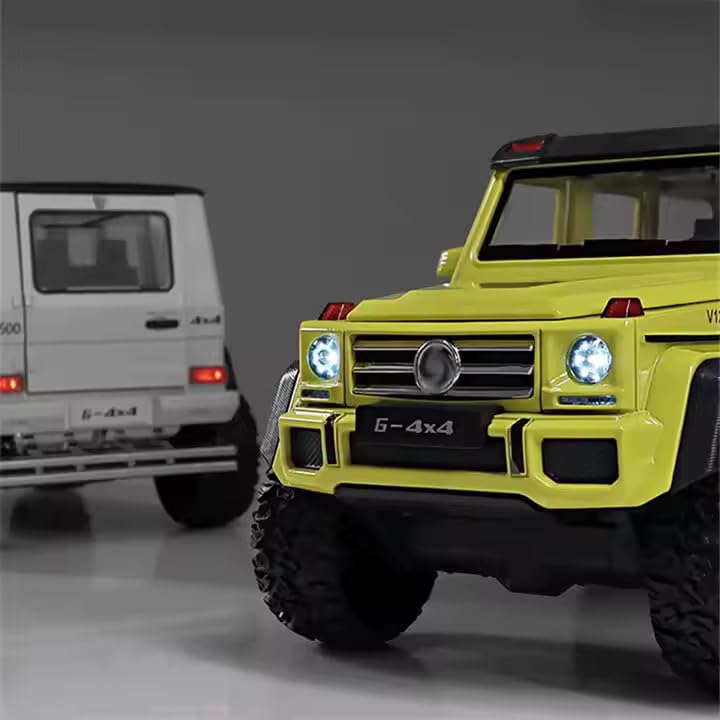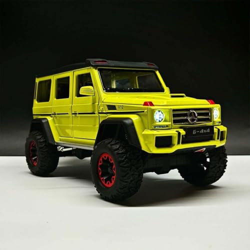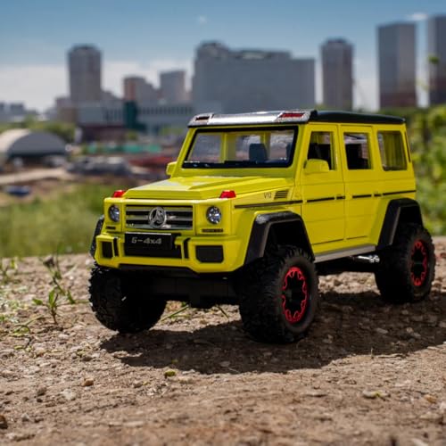 Generic - سياره رياضية فارهه - ماكيت مصنوع من سبيكة معدنية مصبوبة (جي كلاس G500 الفاخرة مع إضاءة وصوت بوق ودخان تفاعلي من عادم السياره - مقاس 1:24 - اصفر)
