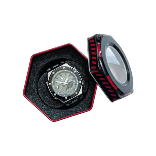 Generic - ساعة يد رياضية فاخرة، تصميم ثماني الأضلاع، هيكل معدني أسود، مينا رمادي