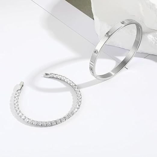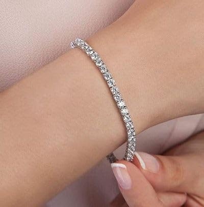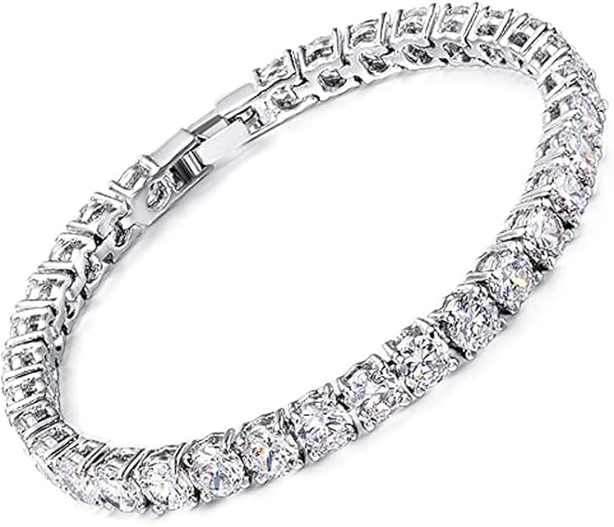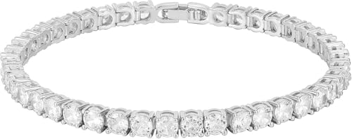Generic - سوار تنس فاخر من الفضة المقاومة للصدأ، تصميم كلاسيكي براق مع كريستال لامع
