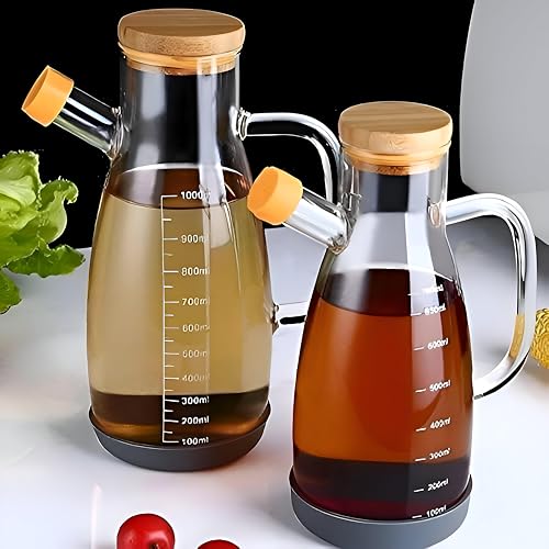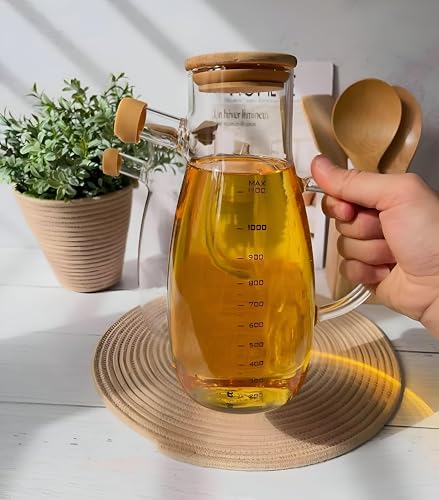 Generic - زجاجة شفافة مع غطاء من البامبو وسدادة سيليكون لمنع التسريب، مناسبة للماء والشاي والعصير والمشروبات الطبيعية وخيار بيئي لإعادة الاستخدام، سعة 1 لتر