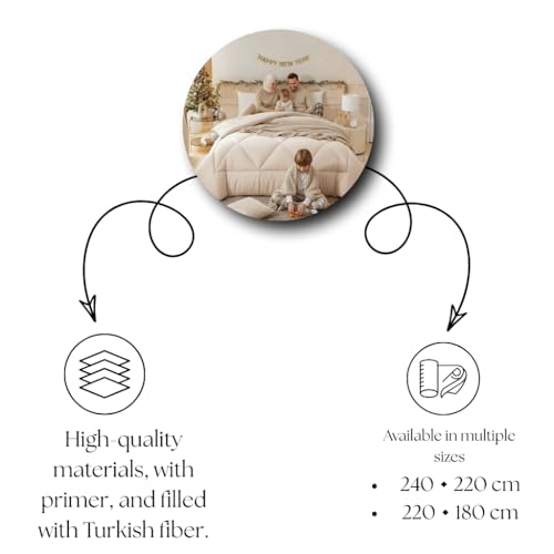 - [اللحاف الذي لن تندم على شرائه] مصنوع من الفايبر التركي الفاخر، بخياطة متينة وقدرة على الاحتفاظ بالشكل لفترة طويلة، هذا اللحاف مصمم ليصمد طويلاً. إنه خيار موثوق وعالي القيمة يمنحك الراحة والدفء والأناقة—ليصبح شراءً ستشعر بالرضا التام تجاهه بنسبة 100%.
