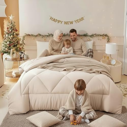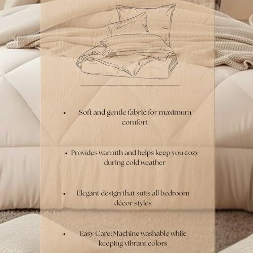 - [ارتقِ بتجربة نومك فورًا] هذا اللحاف لا يقتصر على إبقائك دافئًا فقط—بل يغير طريقة نومك تمامًا. خامته الفاخرة وطويلة الأمد تجعل سريرك يبدو أكثر فخامة، لتستمتع بتجربة دافئة تشبه فنادق الخمس نجوم في منزلك، ستتطلع إليها كل ليلة.