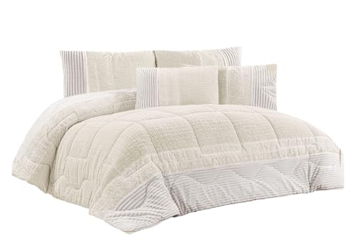 - مجموعة متكاملة: تشمل لحاف سرير مع أغطية وسائد متناسقة لمظهر أنيق ومتناغم