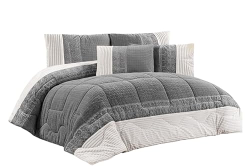 Generic - لحاف قطيفة فاخر مع نقشات مميزة، مجموعة أغطية سرير ناعمة، لون كريمي ورمادي، تصميم عصري مبطن