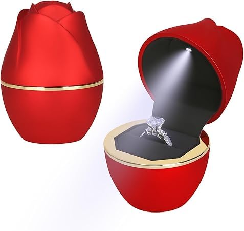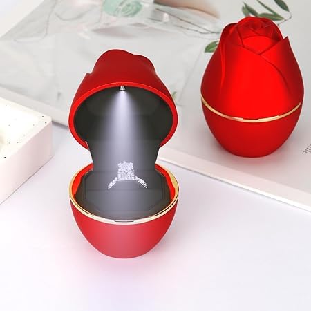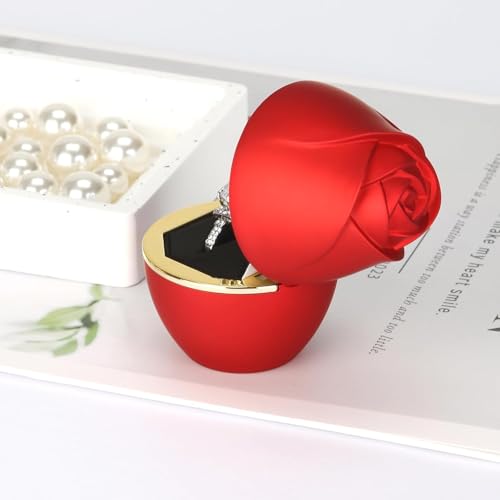 Generic - علبة خاتم قطيفة بتصميم وردة حمراء، حافظة لمجوهرات الزفاف والعروض