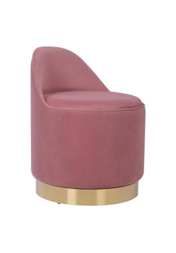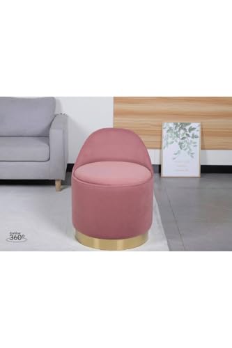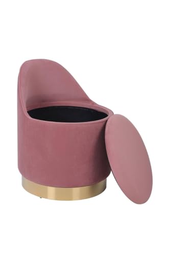 Generic - كرسي بوف دائري قطيفة فاخر بغطاء قابل للفتح ومساحة تخزين داخلية – تصميم مودرن بقاعدة معدنية ذهبية ثابتة – مقعد مبطن مريح لغرفة المعيشة وغرفة النوم والريسبشن – لون وردي أنيق مناسب