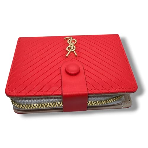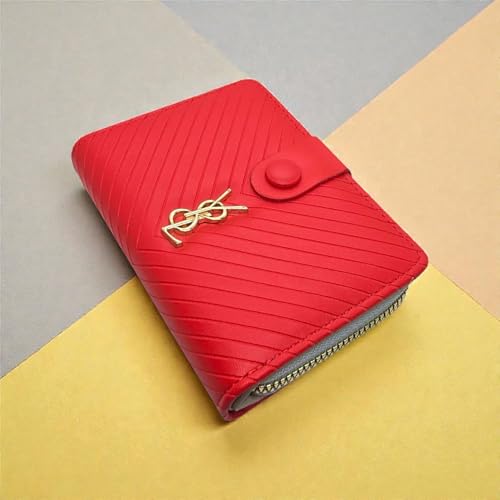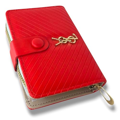 Generic - محفظة بتصميم أنيق متعدد الاستخدامات للنساء بسعة كبيرة ولها جانبين و1 سوستة مع حامل كروت ومحفظة للعملات المعدنية (تصميم نوتة موسيقية، أحمر)