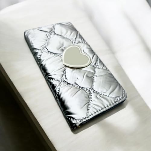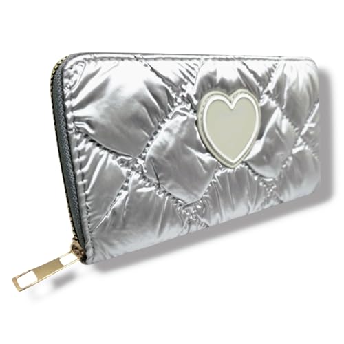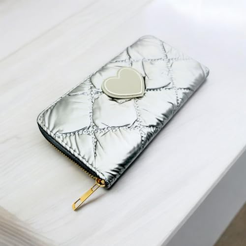 Generic - محفظة فاخرة لامعة متعددة الوظائف للنساء، مصممة بسحاب بسعة كبيرة، 1 سحاب داخلي للعملات المعدنية، حامل بطاقات الصراف الآلي (فضي لامع)