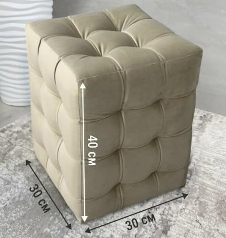 - تصميم أنيق: يتميز المسند المكعب المخملي الفاخر باللون البيج الدافئ بتفاصيل معنقدة بأزرار كاملة مع تنجيد فاخر مخيط بالألماس للحصول على مظهر راقي في أي غرفة