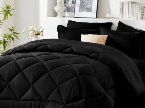 Generic - لحاف شتوي رائع من القطن، ناعم ومريح، محشو بالفايبر، خفيف الوزن، تصميم أنيق، (لون أسود، مقاس 1.8 × 2.2 م)