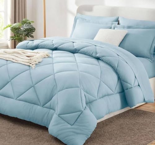 Generic - لحاف شتوي فاخر من القطن ناعم ومريح ومحشو بالفايبر بتصميم انيق وخفيف الوزن (ازرق مقاس 180 × 220)