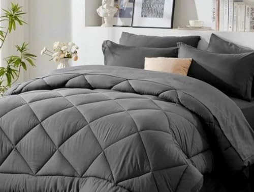 Generic - لحاف شتوي فاخر من القطن، ناعم ومريح، محشو بالفايبر، خفيف الوزن، تصميم انيق (رمادي داكن، 225 × 240)