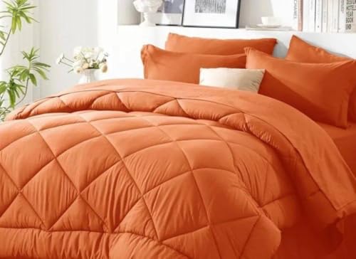 Generic - لحاف شتوي رائع من القطن، ناعم ومريح، محشو بالفايبر، خفيف الوزن، تصميم أنيق، (لون برتقالي، مقاس 1.80 × 2.20 م)
