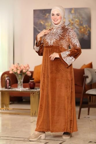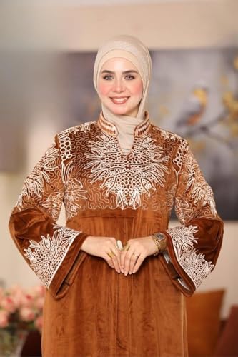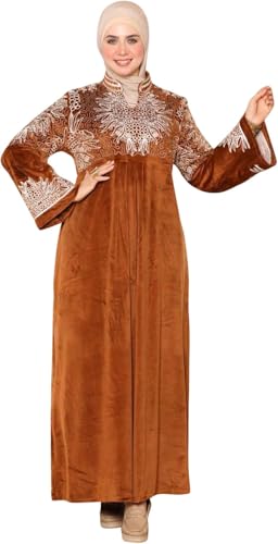 Generic - عباية شتوي قطيفة فاخرة بتطريز أنيق على الصدر والأكمام – تصميم محتشم – مع حزام خصر لإطلالة راقية تناسب الجسم – مقاسات من 65 حتى 120 كيلو – عباية خروج شتوية للمحجبات